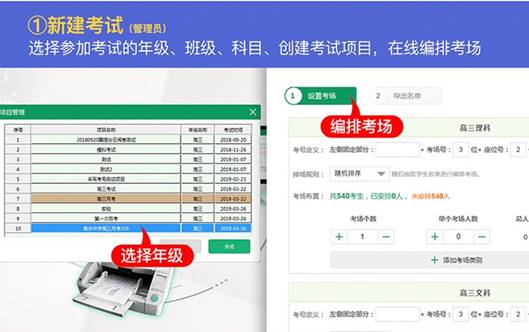選擇參加考試的年級(jí)、班級(jí)、科目,創(chuàng)建考試項(xiàng)目。