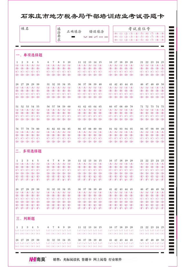 地方稅務(wù)局干部結(jié)業(yè)答題卡